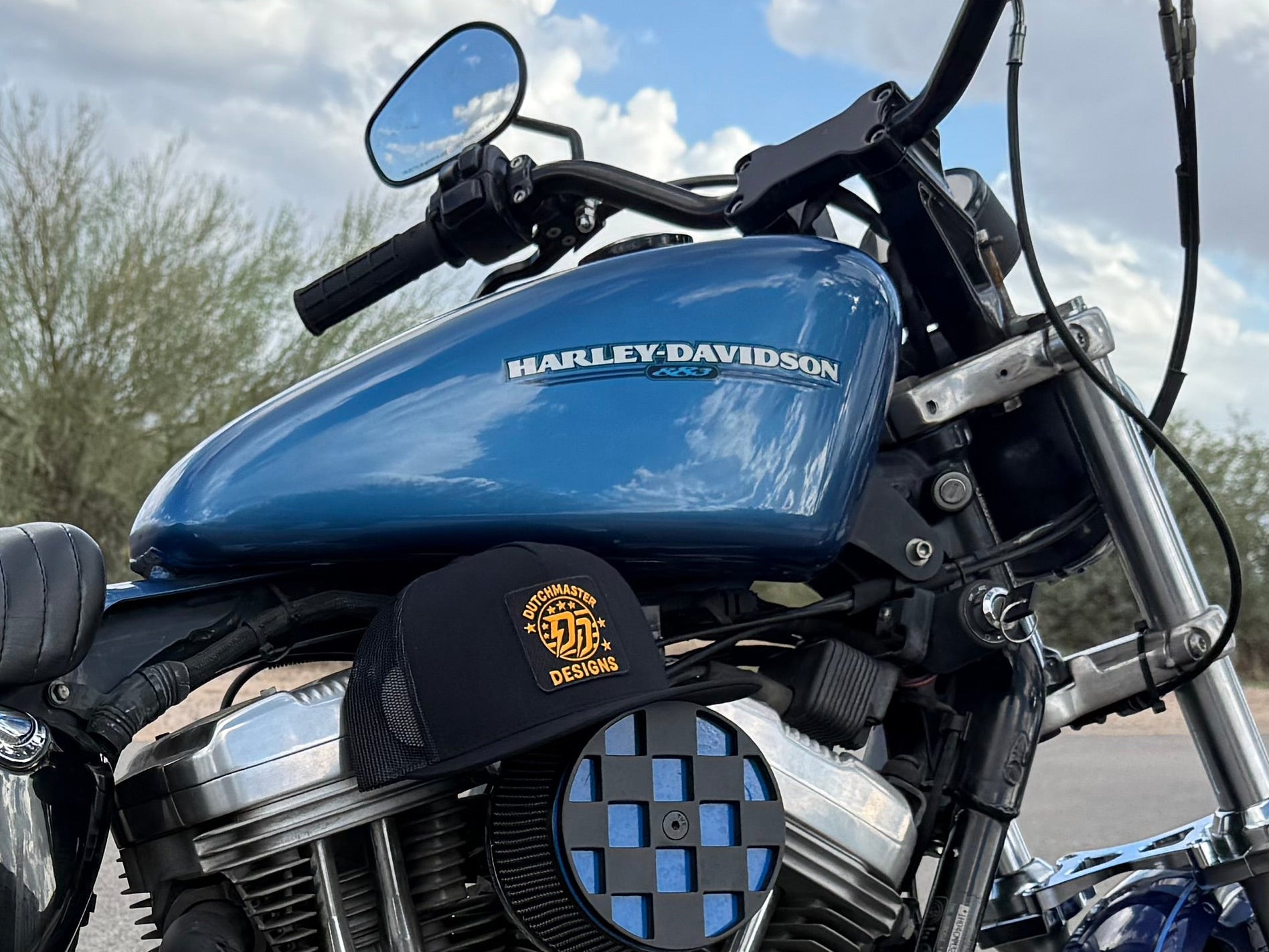 The American Grit trucker hat represents the backbone of the shop — long days, late nights, and the drive to create something out of nothing. Featuring a bold gold-embroidered Dutchmaster patch front and center, this cap carries the same pride and precision that goes into every part we make.