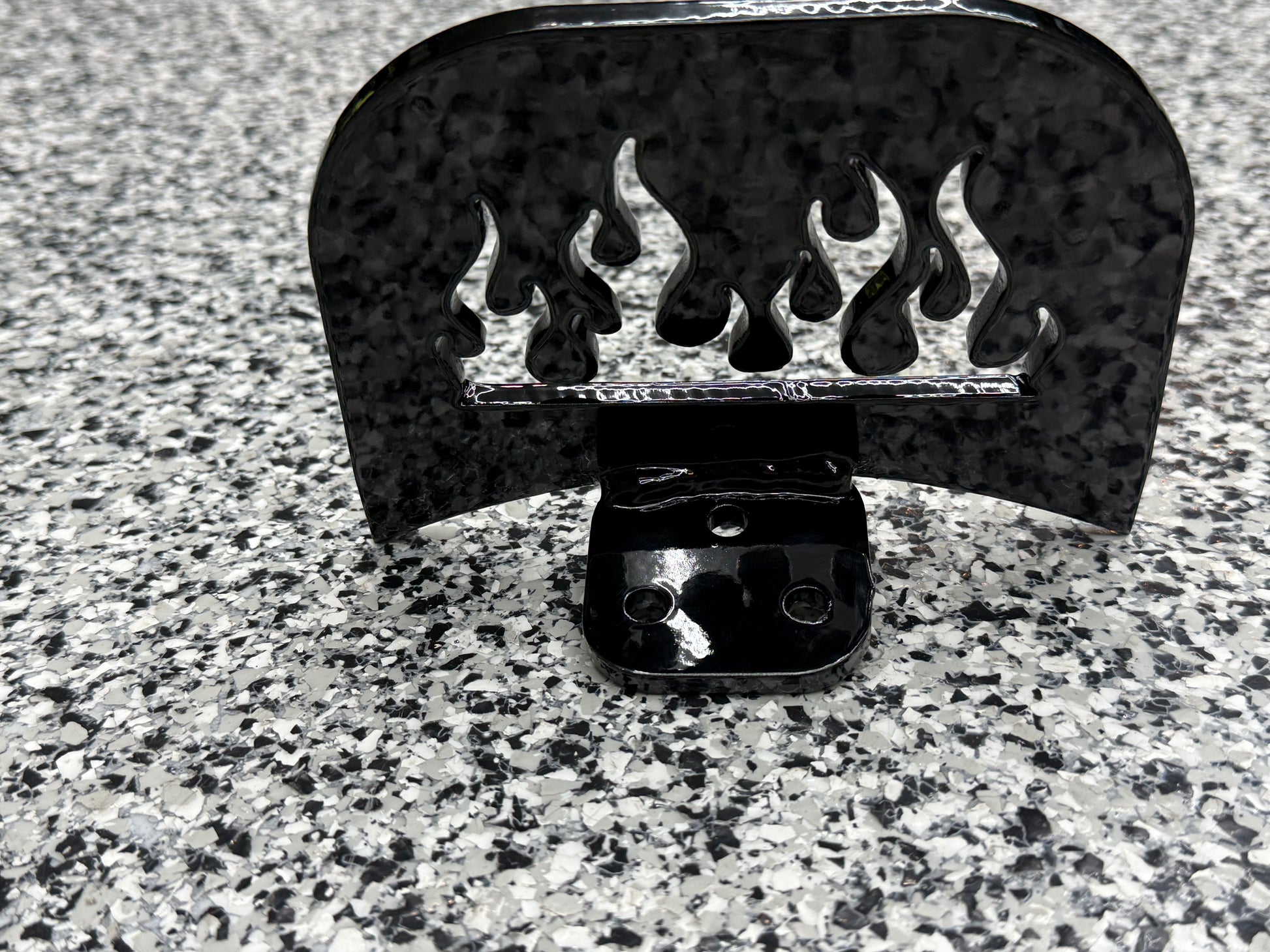 Upgrade your stunt setup or add a bold touch to your build with this American-made CNC plasma cut step plate. Featuring a flame cutout design, it bolts directly to your existing license plate holes—no drilling required.